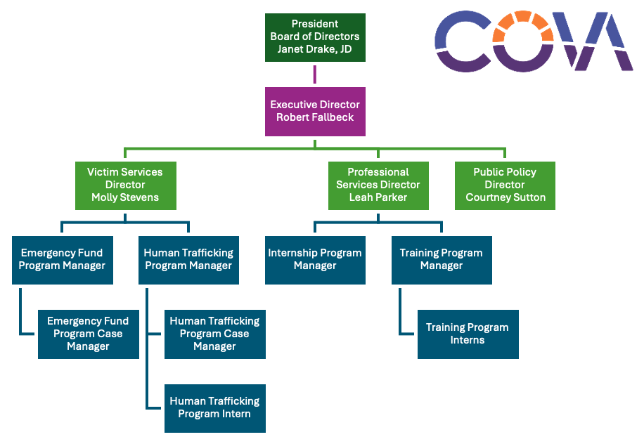 COVA is led by an experienced team of professional service providers with diverse perspectives and backgrounds. The Board of Directors is comprised of respected leaders who value strong victim advocacy and support in Colorado.